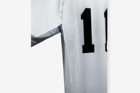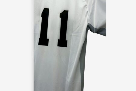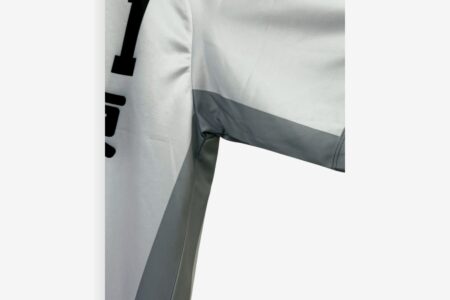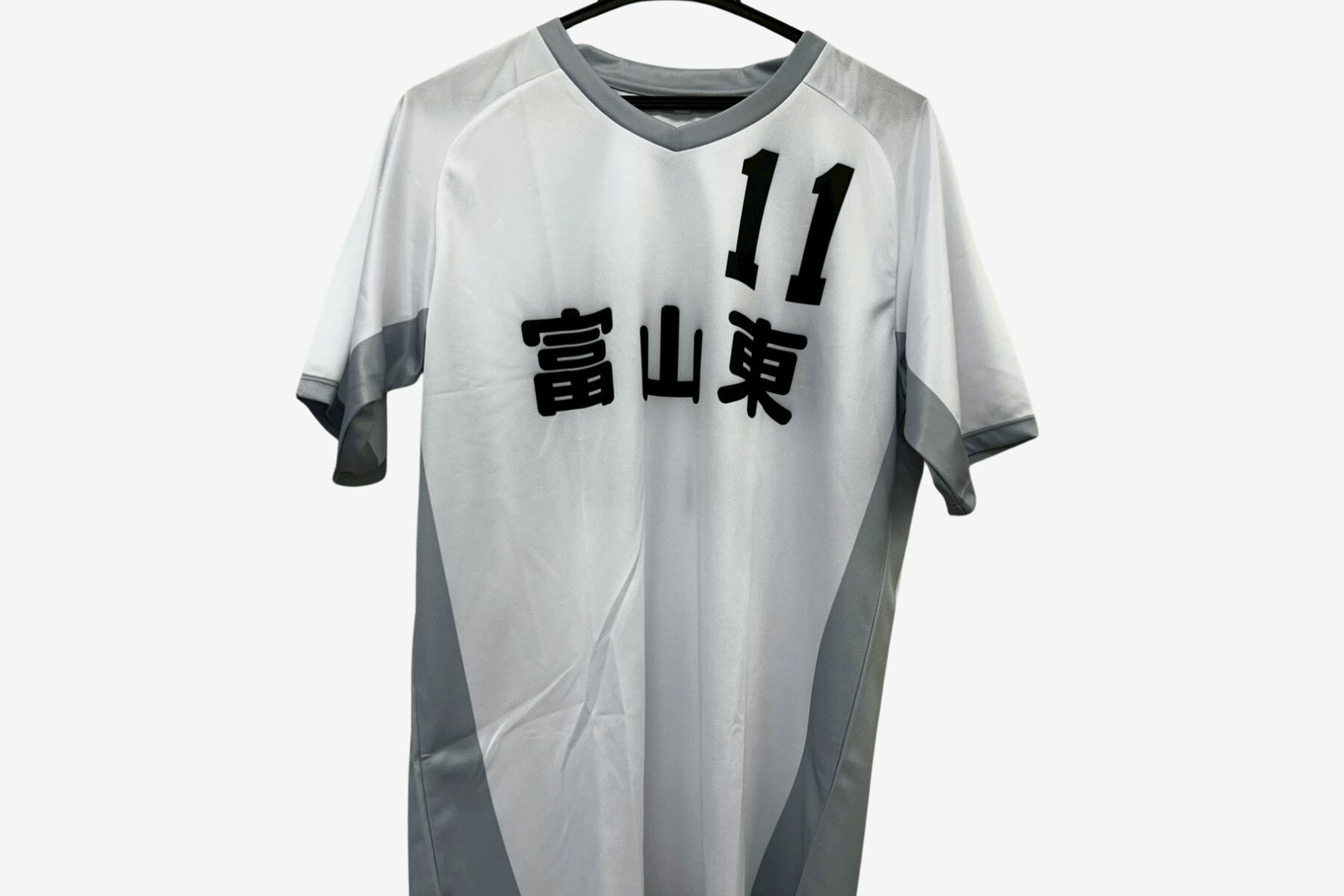 富山東様向けに作成したハンドボールユニフォームの実績です。ライトグレーを基調に、サイドへ濃淡を持たせた配色とすることで、シンプルながらも立体感のあるデザインに仕上げています。番号や校名は視認性を重視した配置とし、試合中でも判別しやすい仕様です。昇華プリントを採用することで、生地の柔らかさや軽さを活かし、動きやすさにも配慮しました。パンツとの統一感を含め、実用性とデザイン性を両立したハンドボールユニフォーム事例です。